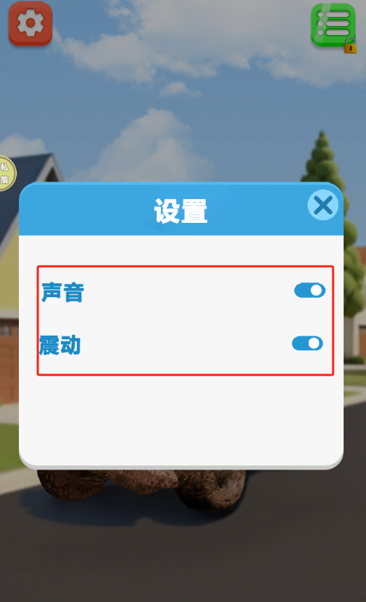 2、点击左上角的设置进去打开声音来体现游戏吧。