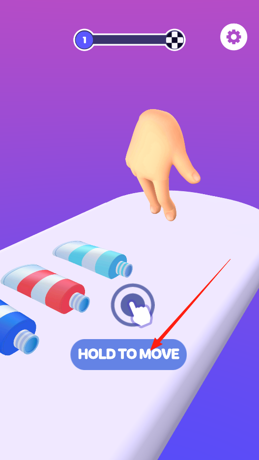 1、长按HOLD TO MOVE按钮,控制手移动,在平台上抓取颜料管,按顺序操作,开启色彩挑战,体验长按移动机制。