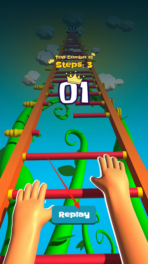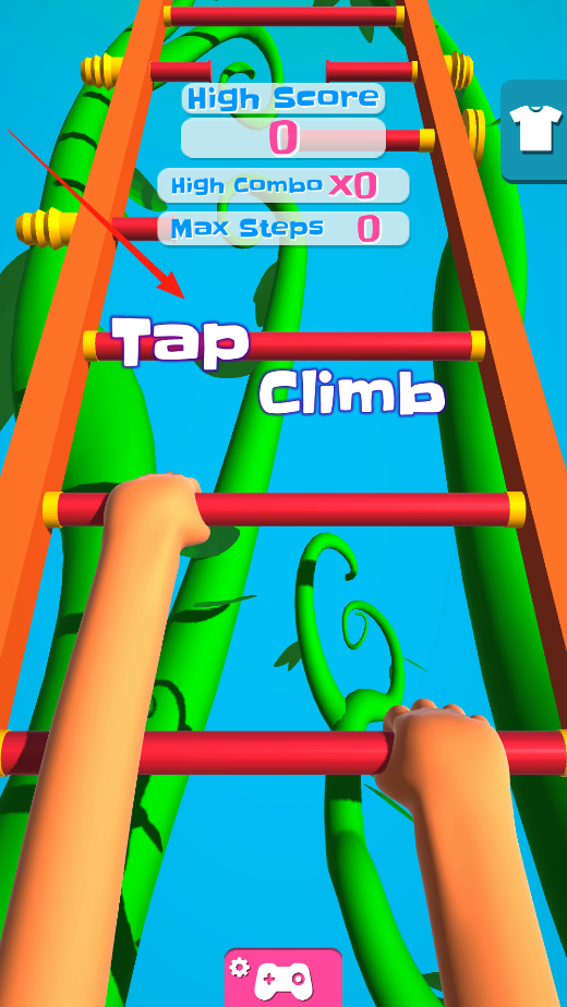 1、点击Tap Climb开启攀爬,双手交替向上移动,挑战高空梯子,记录分数,体验攀爬开局机制。