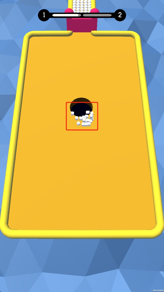 2、控制黑洞持续移动,借助洞口收集白色小方块,保证方块完整通过,积累通关所需元素。
