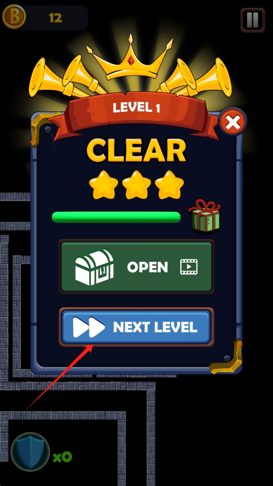 3、关卡完成后,点击NEXT-LEVEL,进入下一关,迎接新的迷宫挑战,争取三星通关,点击下一关。
