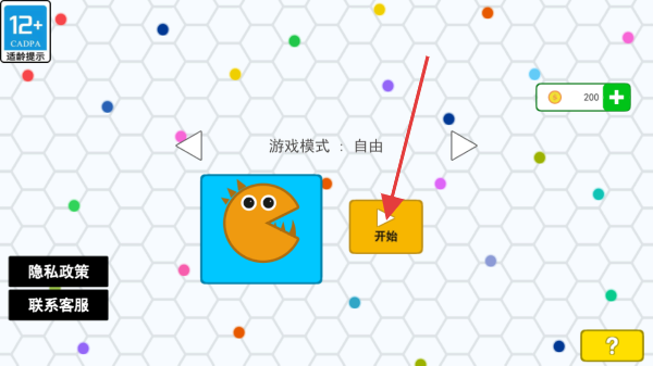 2、在游戏模式选择界面,点击开始按钮,即可进入自由游戏模式,开启吞噬成长之旅。