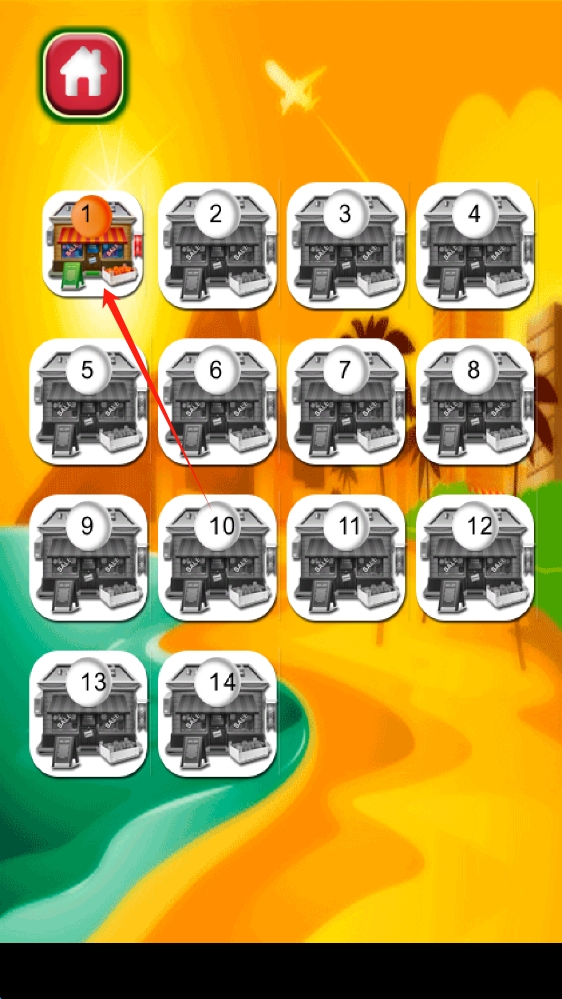 2、关卡选择时,点击LEVEL-1,进入第一关,迎接水果轨道的挑战,点击选择游戏关卡。