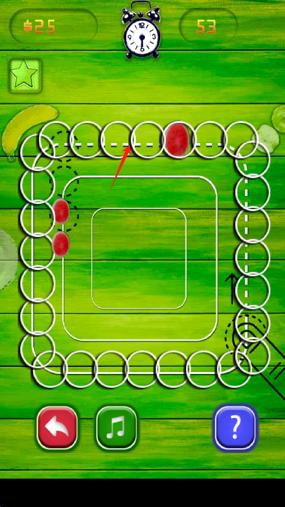 3、游戏中操控水果,在轨道上灵活移动,注意时间限制,避开障碍,完成关卡,滑动调整水果位置。