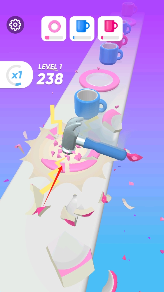 2、游戏中,操控锤子,瞄准物品,精准击碎,注意关卡要求,积累分数,点击锤盘子。
