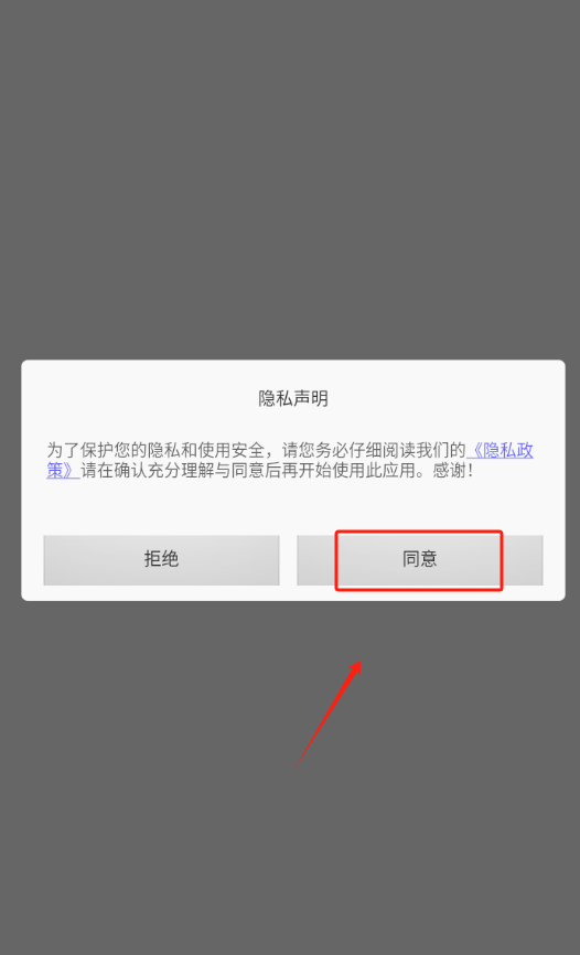 1、点击隐私声明红色框框的同意并进入。