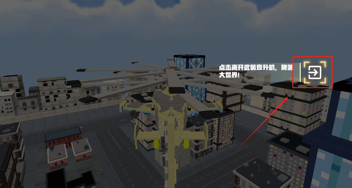 3、点击离开武装直升飞机,降落大世界。