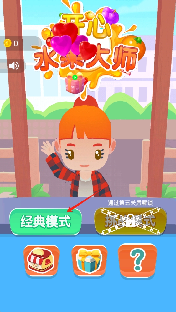 1、在开心水果大师启动界面,点击经典模式,开启水果榨汁冒险,点击选择模式。