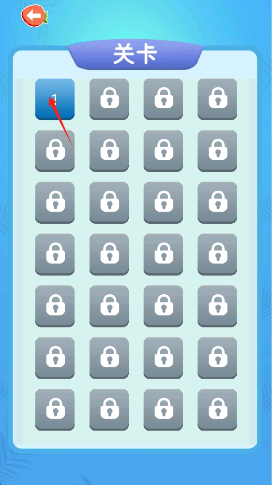2、关卡选择时,点击LEVEL-1,进入第一关,迎接水果榨汁的挑战,点击选择关卡。