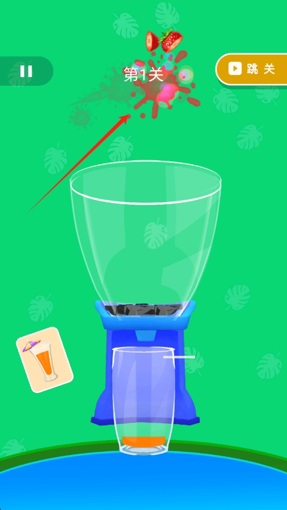 3、游戏中,将水果准确放入搅拌机,制作果汁,完成关卡任务,体验榨汁乐趣,点击榨汁。