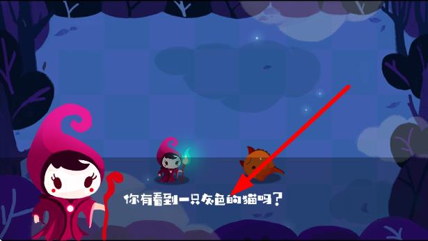 1、角色询问你有看到一只灰色的猫吗,需在森林环境探索,与场景互动,留意可能藏猫的区域,和其他角色交流获取线索,推进找猫任务。