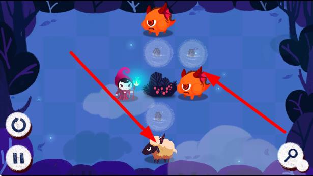 3、在有羊和带翅膀小怪的场景,先观察敌人位置与移动规律,引导角色靠近羊互动,或借助场景元素躲避、攻击小怪,逐步探索,达成任务。