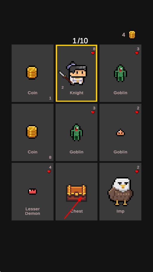 1、进入游戏后选择地牢关卡,点击网格中的卡牌翻开,触发战斗、道具或机关等事件,开启地牢探索之旅。