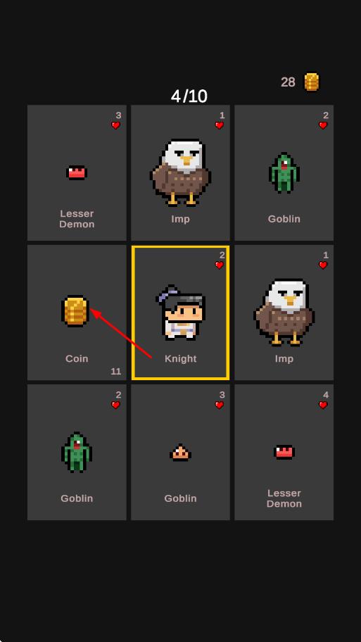 2、遭遇敌人时通过翻牌选择攻击、防御或技能,根据敌人特性搭配策略,击败敌人获取金币与装备提升实力。