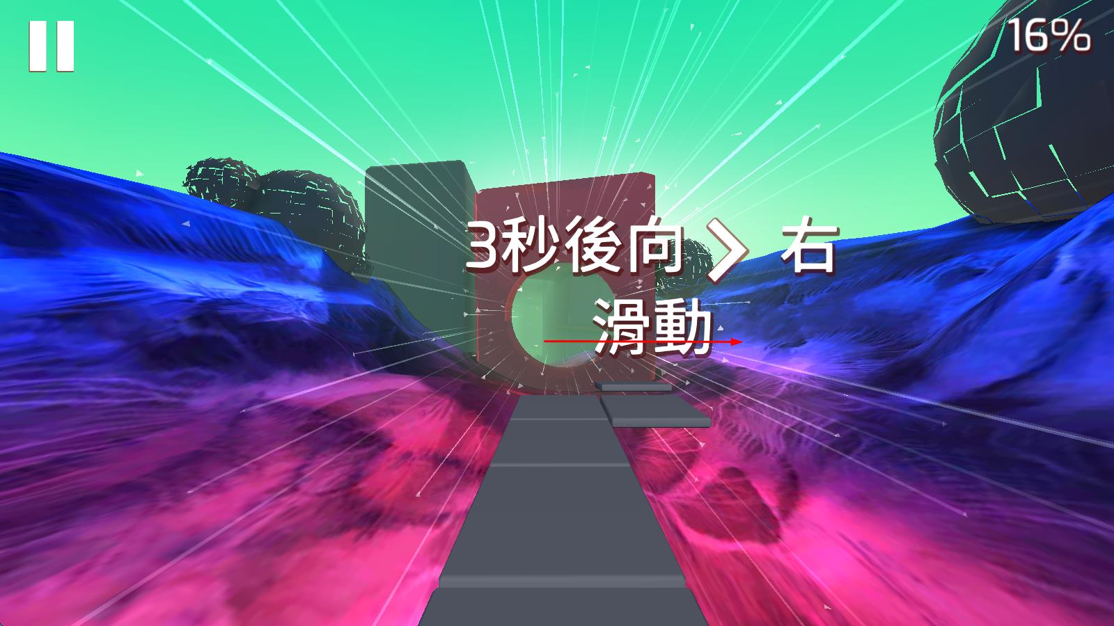 1、进入游戏后,面对初始关卡的3D科幻场景,操控角色开始前进,尝试躲避首个障碍,收集沿途紫色宝石,熟悉指尖操控节奏,开启冒险之旅。