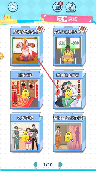 2、在关卡选择界面,可选择帮她修炼成人、帮女生减肥应酬等关卡,点击对应关卡即可进入游戏。
