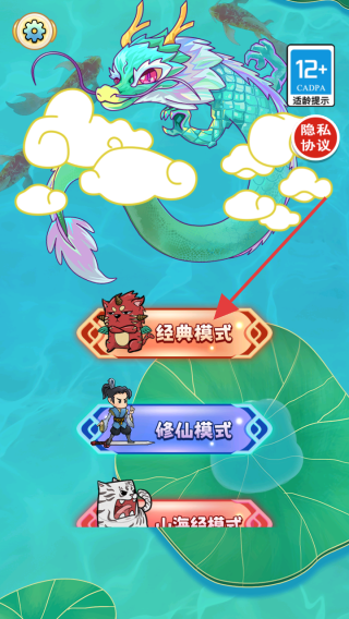 1、在游戏模式选择界面,点击经典模式,即可进入经典玩法模式,开启蝌蚪成长进化之旅。
