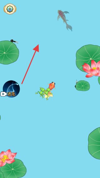3、持续操控角色移动,使蝌蚪不断进化,从蝌蚪成长为青蛙等更高级形态,在水中自由探索,完成进化挑战。