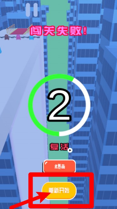 3.失败重来:闯关失败时,点击重新开始按钮即可立刻复活,继续尝试冲破障碍,赢得更高分数与关卡奖励。