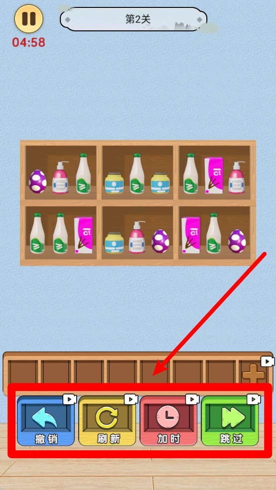 3.辅助功能操作:下方的撤销、刷新、加时与跳过按钮能帮助玩家在遇到困难时灵活调整策略,提高过关成功率。