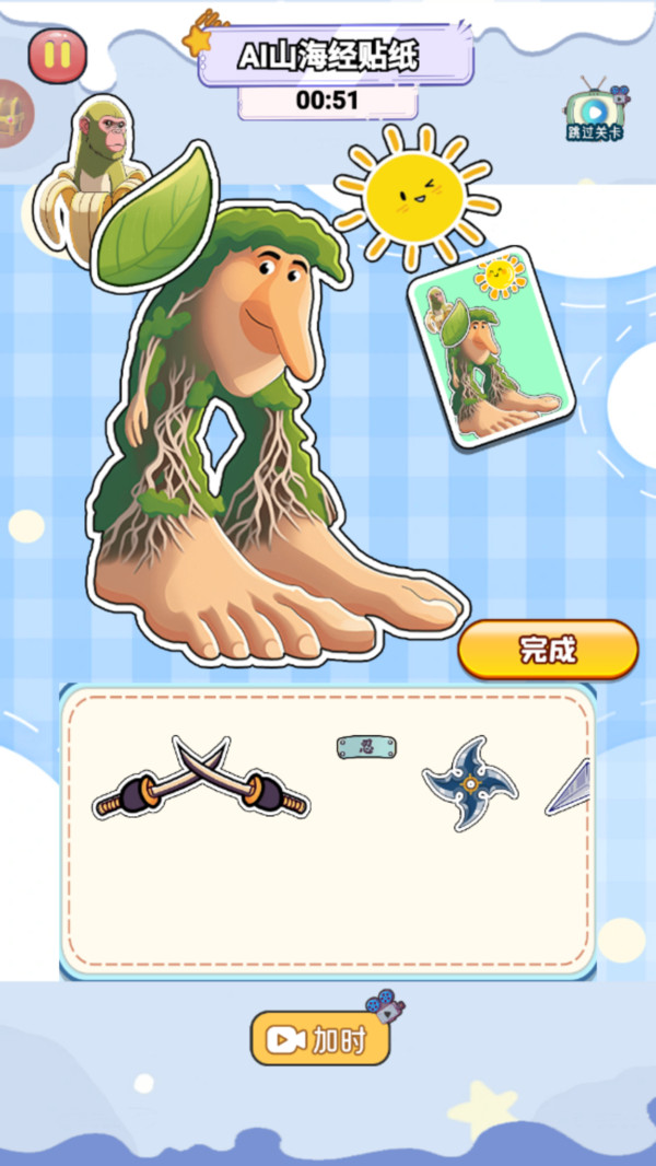 2.贴纸收集:将获得的贴纸放入收集区,通过点击加时按钮延长时间,助你拼出独一无二的画面。
