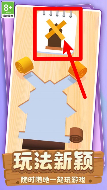 1.根据关卡上方的目标图案提示,将彩色卷筒进行合理拖动与排列,确保最终形状与目标图案保持一致完成挑战。