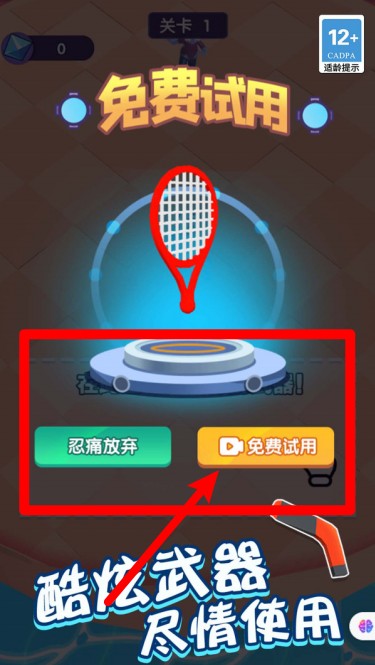 1.玩家可通过观看广告视频选择免费试用特殊武器,直接体验各种酷炫装备,提升战斗力并在关卡中轻松获胜。
