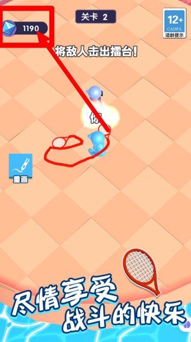 2.左上角的宝石数量显示玩家现有资源,积累更多宝石可以解锁强力武器或功能,让对战过程更加轻松顺畅。