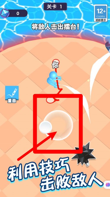 3.屏幕右下方的虚拟摇杆用于控制角色移动,通过精准操作将敌人击出场外,享受击败对手的畅快感。