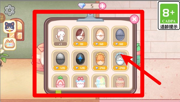 2.在商城界面中可以购买不同的猫咪蛋,通过消耗钻石解锁各种可爱猫咪,满足玩家收集的欲望并增加更多趣味玩法。