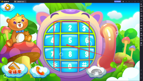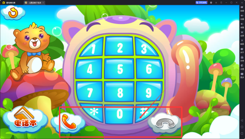 1、孩子可自由操作电话界面,通过点击数字按键进行模拟拨号,或从通讯录选择预设联系人进行"通话",体验完整的通话流程。