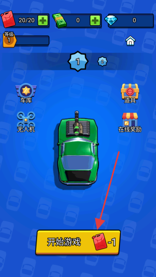 1、点击开始游戏按钮,消耗1个道具即可进入游戏,开启赛车战斗之旅。