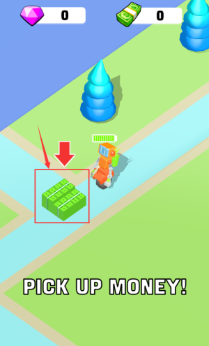 2、控制机器人拾取红框标记的绿色钞票资源。