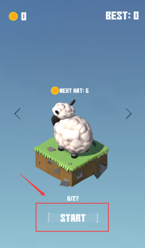 2、点击红框START按钮,控制绵羊收集5顶帽子。