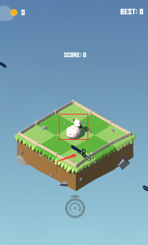 3、点击红框羊羊,避开剪刀别被碰到。