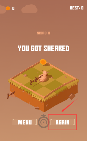 4、点击红框AGAIN按钮,重新开始游戏挑战。