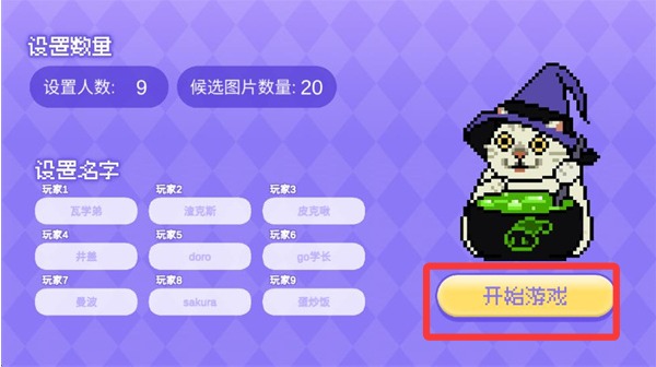 1、打开游戏,设置人数和图片数量,点击右下角开始游戏开始。
