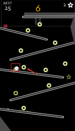 3、控制红框白色小球,沿轨道收集发光圆点得分。