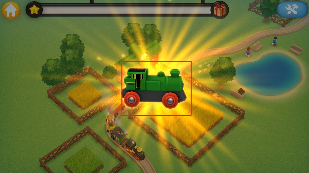 3、成功收集全车厢后,解锁新绿色火车,点击可替换使用,驾驶新火车在农场、湖泊等场景轨道行驶,拓展玩法。