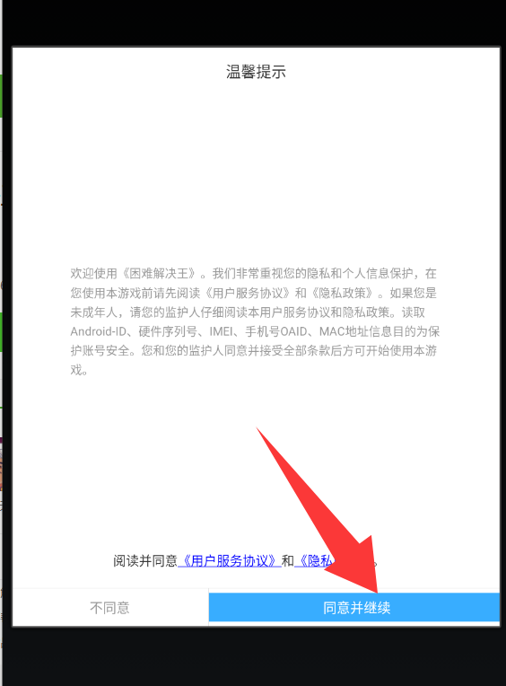 1、点击温馨提示红色箭头的同意并继续。