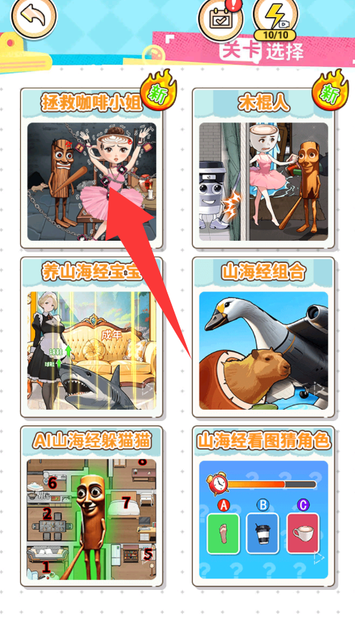 4、进入游戏有6个模式选择,点击第一个。