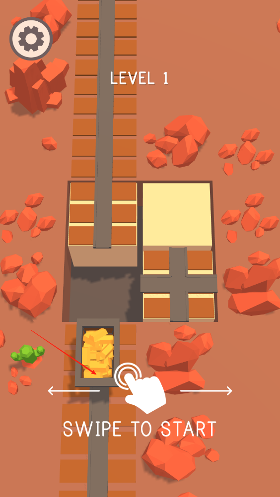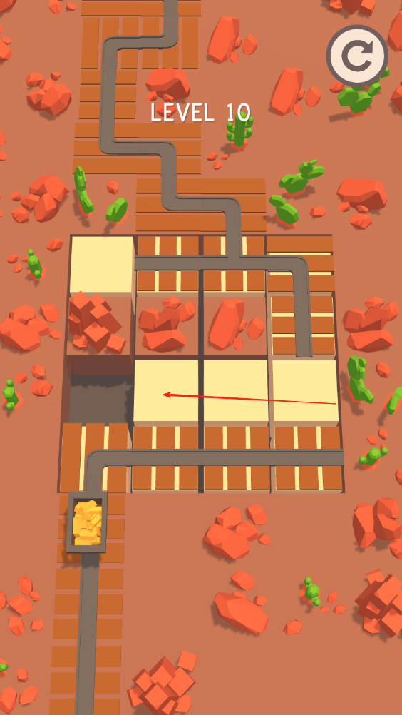 2、不停地移动轨道,将没有轨道的沙石全部挪开,让轨道连接起来,让黄金矿车前进。
