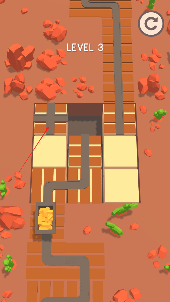1、将图中所有的轨道连接在一起,连接在矿车脚下的轨道,让矿车顺利从轨道穿过进入下一关。