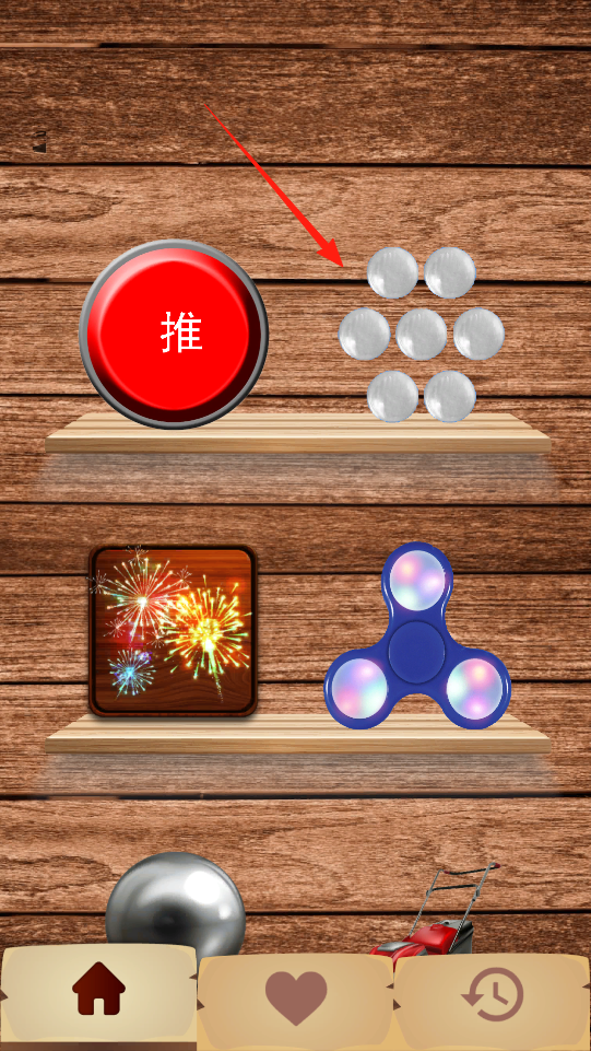 1、在反压力放松界面,选择一个解压工具,点击透明球选择该物品,触发互动,体验物品选择机制。