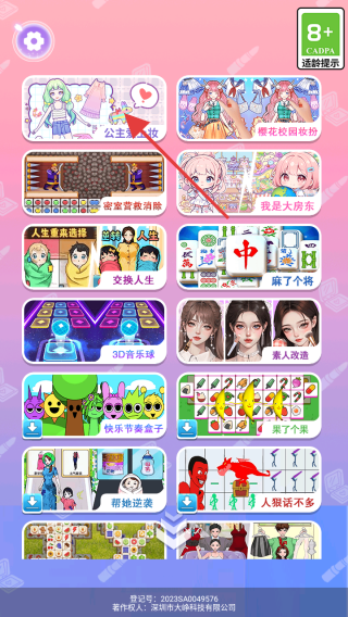 1、在游戏选择界面,点击公主美妆游戏,即可进入公主装扮主题游戏,开启美妆之旅。