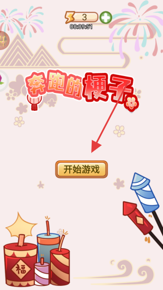 1、点击开始游戏按钮,进入奔跑的梗子游戏,开启趣味文字挑战之旅。