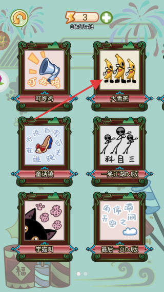 2、在关卡选择界面,可选择叮咚鸡、大香蕉等不同关卡,点击对应关卡即可进入游戏。