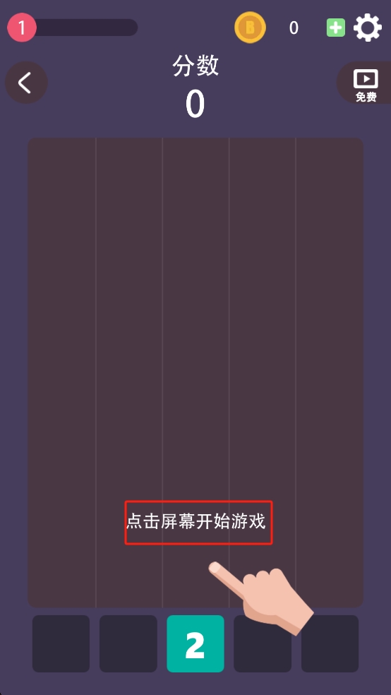 1、点击屏幕开始游戏,进入关卡后,留意下落方块,快速点击相同数字方块,使其合并升级,积累分数。