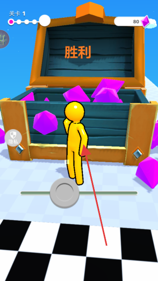 3、持续移动小人,收集足够数量的紫色晶体,当收集到80个时,即可抵达宝箱处,完成关卡获得胜利。