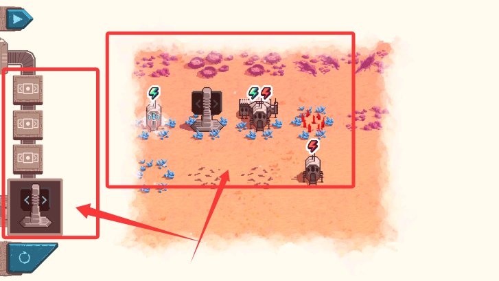 4、组合左侧工具与已解锁设备,完成区域供电目标,解锁更多火星地带。
